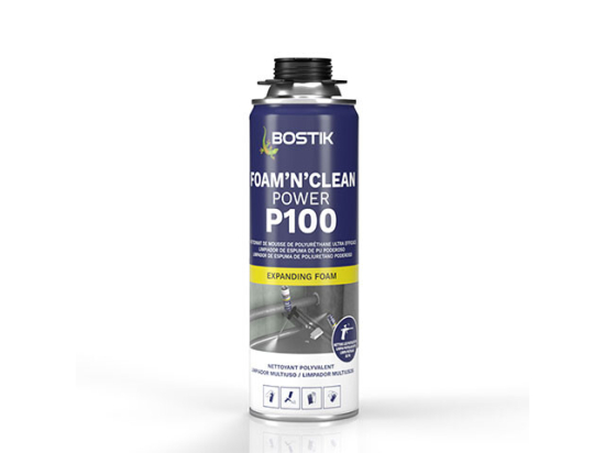 Bostik P100 FOAM’N’CLEAN est un nettoyant puissant pour retirer les excédents et résidus de mousse polyuréthane frais mono et bi-composant. Ce nettoyant a été développé pour le nettoyage en profondeur de l'intérieur du pistolet, du pistolet et des surfaces après l'application de mousse PU. La mousse durcie est non soluble et ne peut être retirée que mécaniquement.