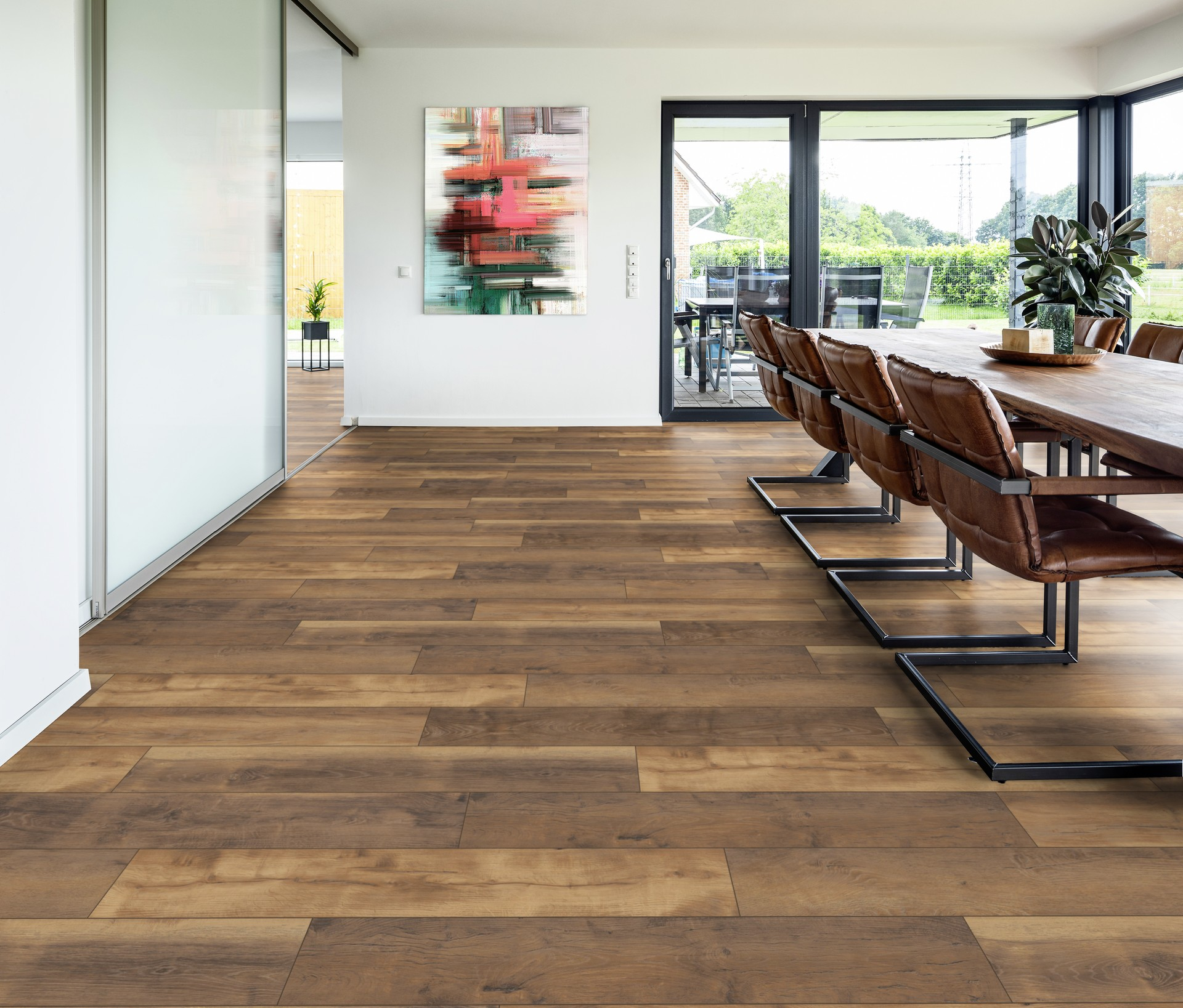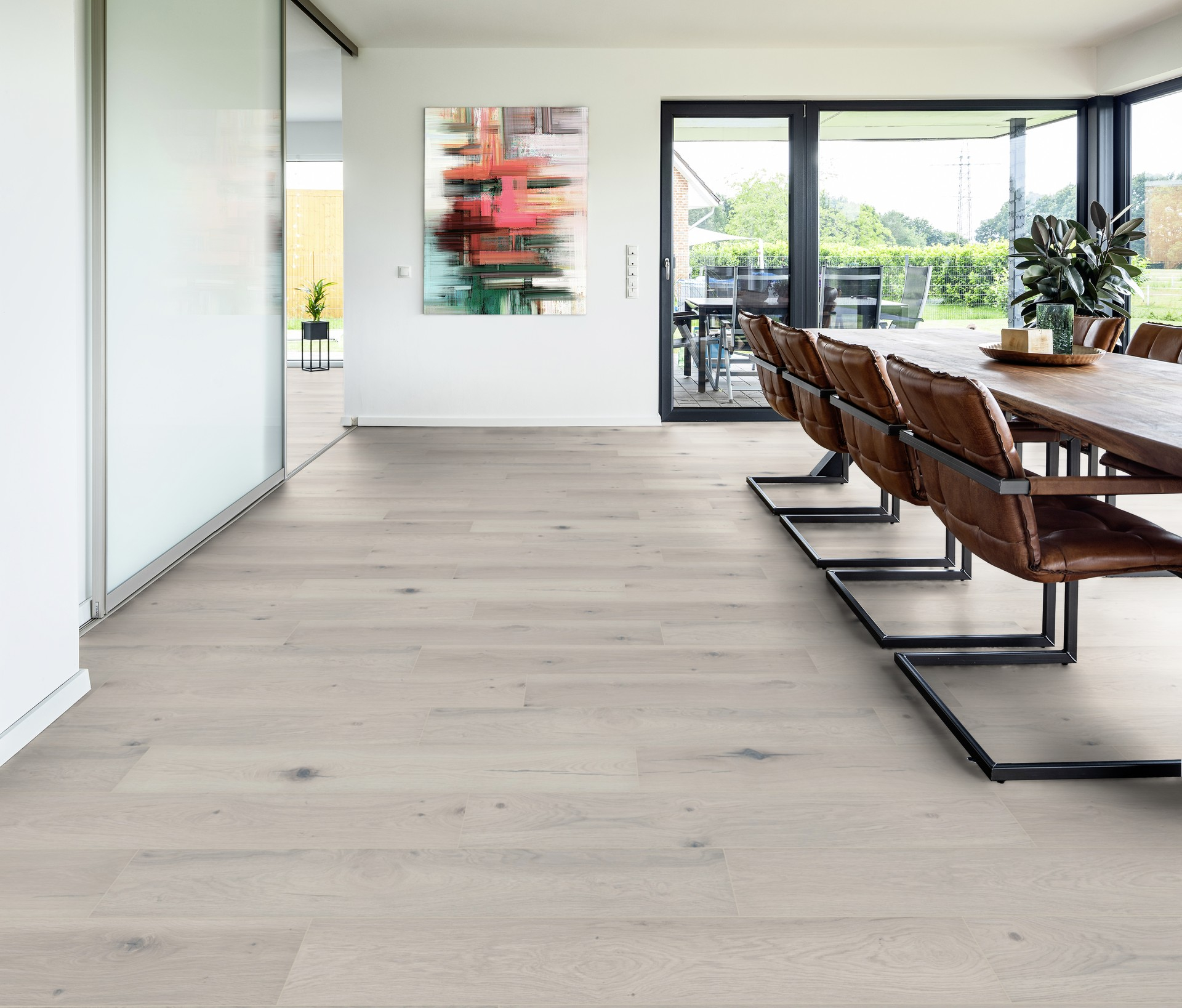 La lame large est la forme d’origine ainsi que la plus riche en traditions des parquets en bois. Les lames larges se caractérisent avant tout par la proportion particulière de la longueur de la lame par rapport à sa largeur. Elles communiquent de manière naturelle le caractère mature des différents bois. Un sol d’une empreinte classique.