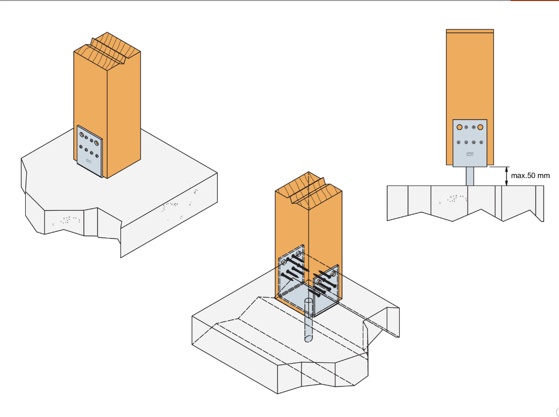 Les pieds de poteau en U à sceller PPD ont été conçus pour faciliter le montage. L'installation dans le béton nécessite des réservations mais permet de régler les niveaux avant de couler le béton.