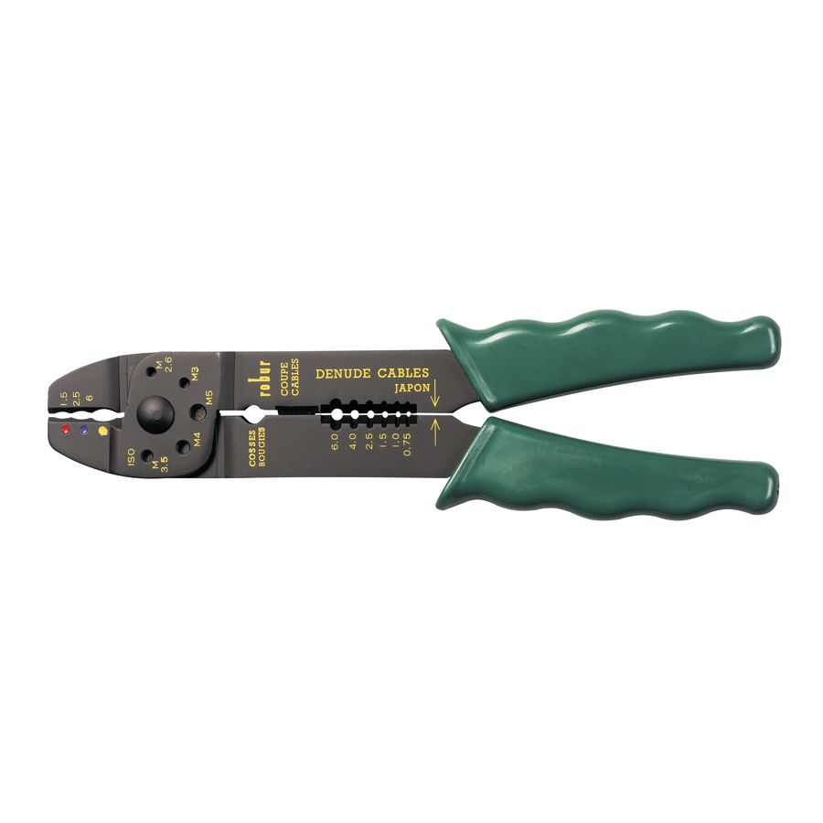 Pince à sertir les cosses isolées de 1.5/2.5/6mm² | Dénude les conducteurs de 0.75 à 6mm² | Coupe les tiges filetées de diamètre de 2.6/3/3.5/4 et 5 mm