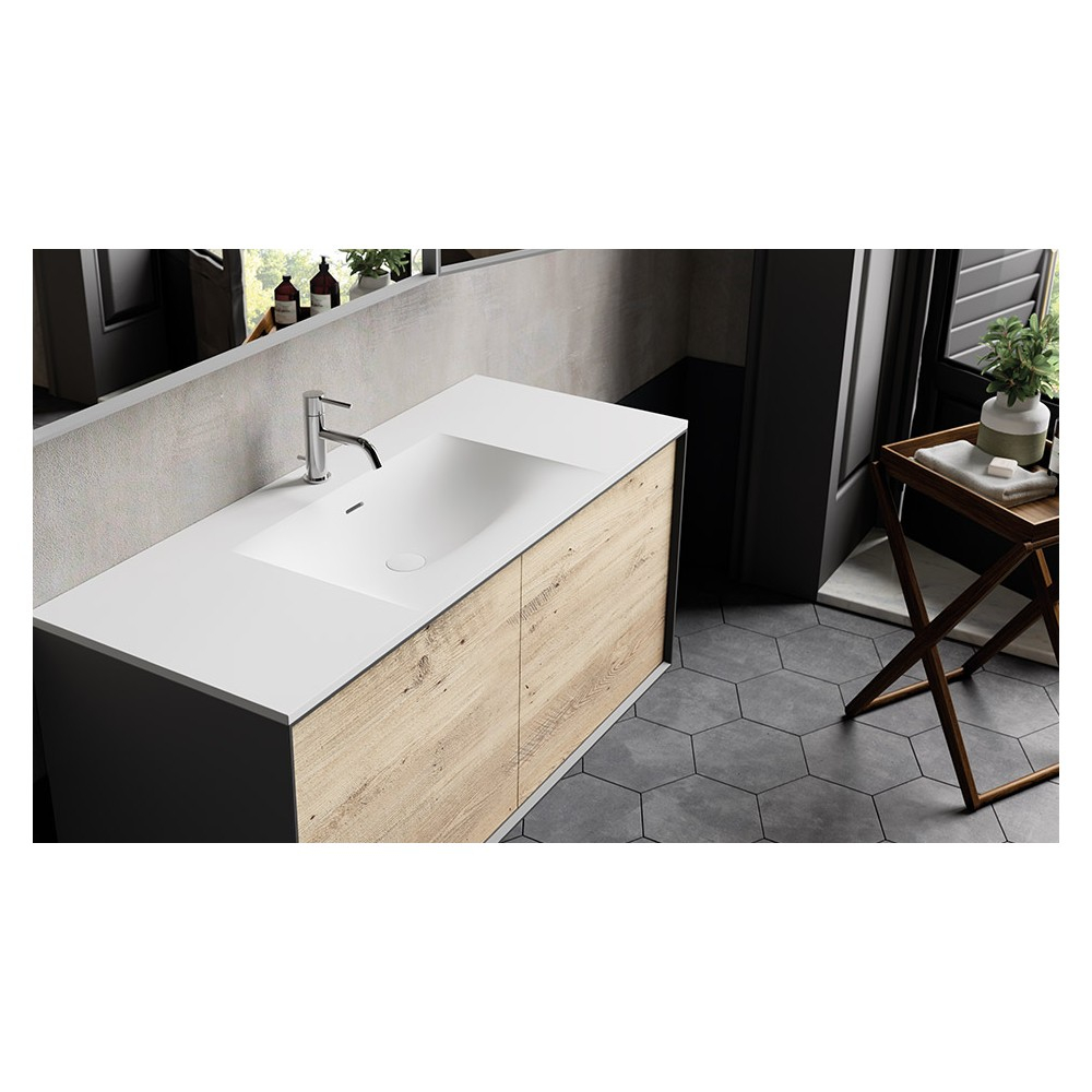 Nos plans vasques en résine minérale, blancs mats ou brillants, d'une épaisseur de 15 mm sont disponibles en plusieurs dimensions standards.