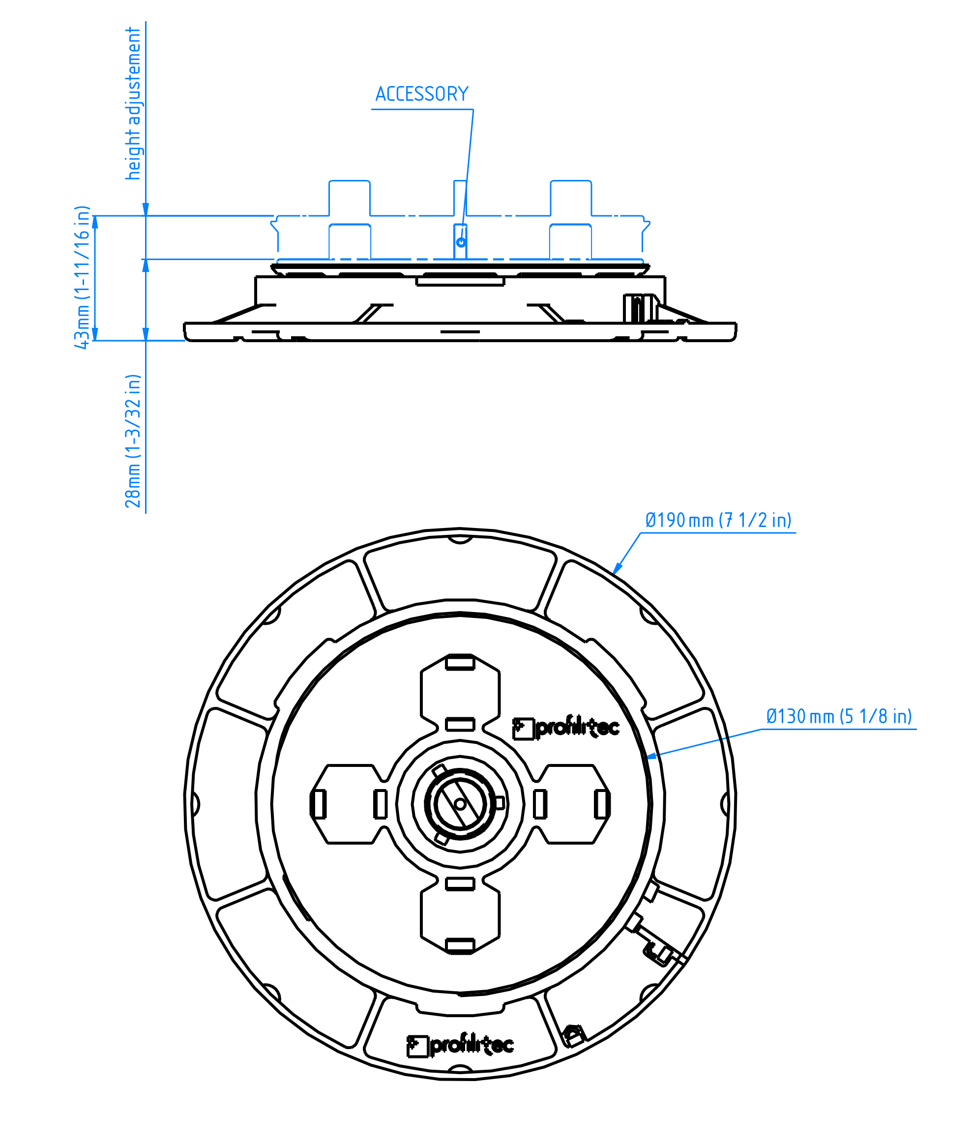 Plot réglable bas autonivelant Uptec SUPAL pour dalle 28 à 43 mm de Profilitec