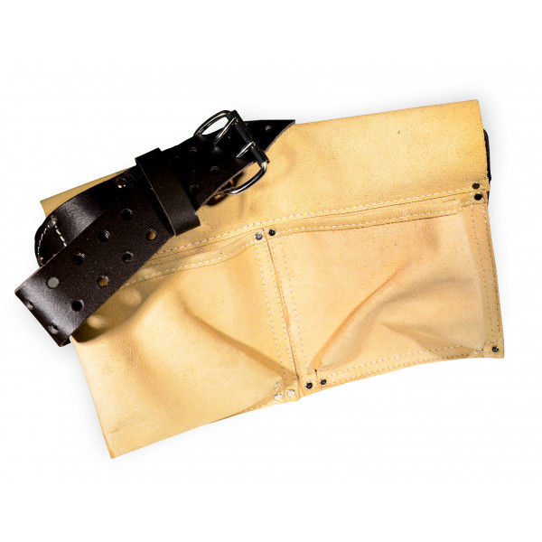 Poche à clous en croûte de cuir véritable. Ceinture réglable cuir / nylon. 2 larges poches et 1 porte-marteau. Marque Edma