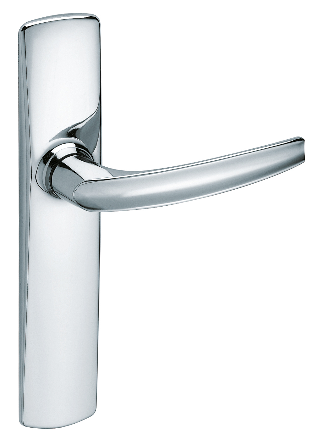 Poignée de porte Angers de marque Vachette. L'incontournable ensemble de porte chromé. Gage de solidité (ensemble monobloc béquille et plaque solidarisées), d'esthétique et surtout de facilité de pose. Solidité • A toute épreuve Durabilité • Conçu pour un usage intensif Complémentarité • Entre les différents modèles chrome miroir de la gamme Gain de temps à la pose • Grâce au vissage simplifié dans les piliers taraudés intégrés à la plaque
