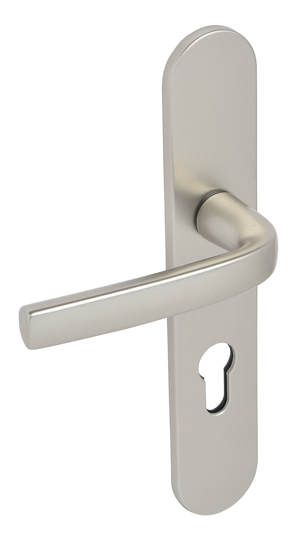 Poignée de porte Logio de marque Vachette. Combinant modernité et sobriété, Logio est une gamme qui s'adapte à tous les projets qu'ils soient résidentiels ou tertiaires. Sa conception vous assure un produit de grande qualité tout en restant économique. Gain de temps à la pose • Vis prémontées sur les rosaces diamètre 48 mm • Vissage simplifié dans les piliers taraudés intégrés aux plaques Résistance • Durabilité de la finition anodisée • Sous-plaque de renfort indéformable Design • Ligne fluide et moderne • Esthétique sobre et intemporelle • Finition Argent ou Anodinox Ergonomie • Volume adapté à une prise en main optimale • Légère courbe intérieure