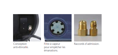 Conception anti-étincelles | Pompe à vide double étage à joint huilé | Electrovanne d'isolement | Double filtre à vapeurs d'huile pour empêcher les émanations | Adapté pour fluides frigorigènes standards et A2L | Débit de récupération: 156l/m (5.5 CFM) | Alimentation 240 V 50 Hz | Moteur 2880 rpm | Compresseur à moteur ventilé | Capacité d'huile 450 ml | Raccords d'admission: 1/4", 5/16", 3/8", SAE | Dimensions 338 x 212 x 238 mm