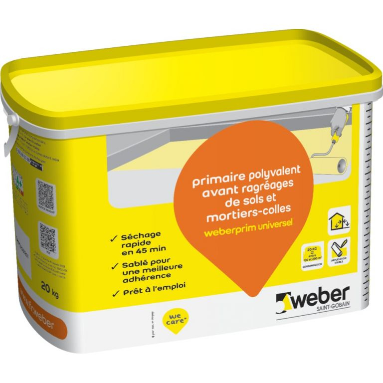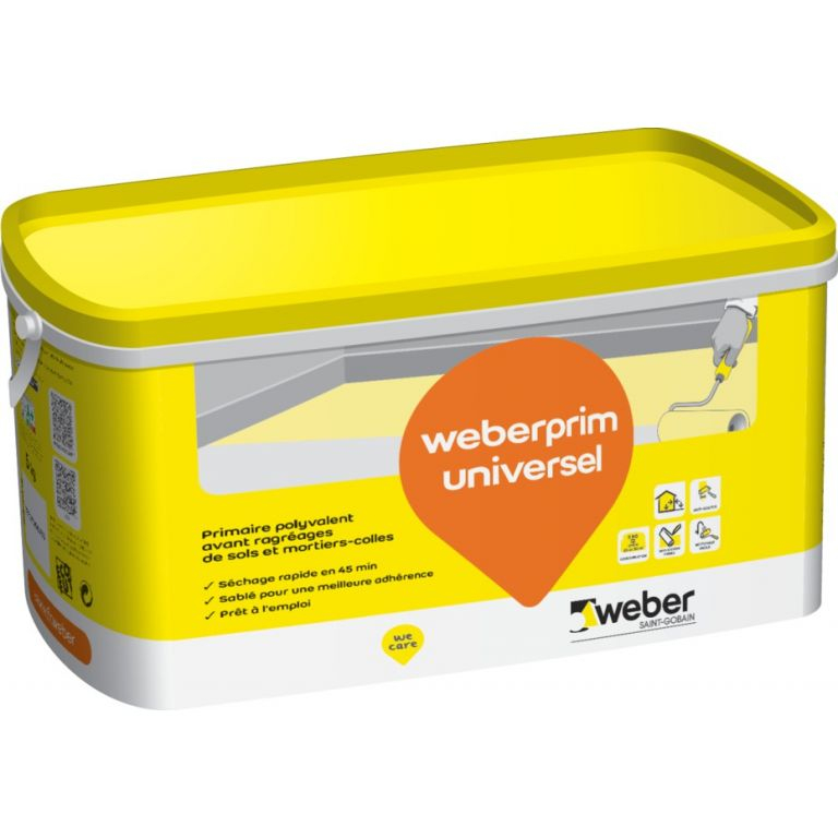 Weberprim Universel est un primaire d’accrochage polyvalent prêt‑à‑l’emploi, conçu pour préparer vos surfaces (sols ou murs) avant la pose de chapes, ragréages, mortiers‑colles ou revêtements, qu’il s’agisse de supports poreux (béton, dalle, chape) ou fermés (carrelage, parquet, ancien revêtement…).