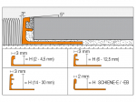 - Joint régulier : présence d’un espaceur à partir de certaines hauteurs (≥ 6 mm selon version) pour garantir un joint constant entre la carreau et le profilé.
