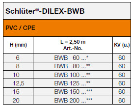La partie centrale en CPE souple, d’une largeur de 10 mm, peut absorber des mouvements relativement importants. Schlüter®-DILEX-BWB peut être utilisé dans des locaux privatifs, mais aussi dans des locaux exposés à des contraintes mécaniques moyennes, comme par exemple des bureaux ou des surfaces de vente.