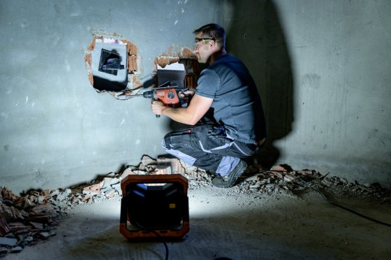 Projecteur LED puissant et performant avec 8900lm offrant un éclairage de travail adapté à une utilisation en intérieur et en extérieur - développé pour les professionnels des métiers de l'artisanat. Projecteur de chantier LED 80W avec interrupteur marche/arrêt doté d'une fonction de variation de l'intensité lumineuse en continu de 10% à 100% pour un éclairage ciblé (appui long sur l'interrupteur). Lampe de chantier LED avec 5m de câble H07RN-F 3G1,5 résistant aux hydrocarbures - adaptée à une utilisation intensive sur les chantiers - livrée avec set de visserie pour montage sur trépied. Projecteur avec protection antidérapante des quatre angles en caoutchouc pour une meilleure stabilité et support de maintien rabattable et réglable pour monter ou fixer le projecteur sur un trépied. Phare de travail LED avec une prise de courant 2P+T 16A/230V à clapet avec fermeture automatique - structure robuste idéale pour tout type de chantier