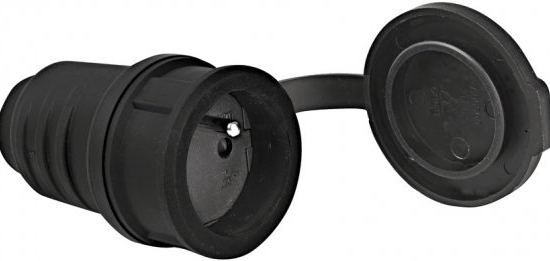 Prise sans câble électrique très robuste avec vis de sécurité. Prolongateur électrique mobile adapté au montage sur câble 3G1,5 - 3G2,5. Prise femelle mobile sans câble conçue pour une utilisation professionnelle, sur chantier. Prolongateur mobile avec clapet mécanique protégé contre la pénétration de corps solides de 1mm de diamètre et les projections d'eau - IP44. Connecteur électrique mobile femelle 2P+T 16A/230V~ sans câble