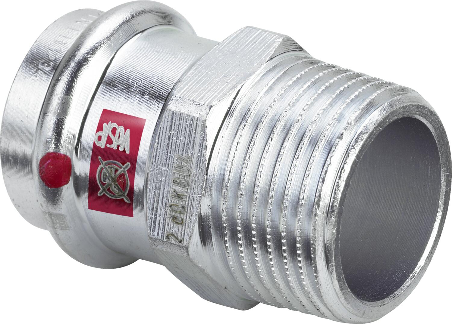 Pièce de transition avec SC-Contur | Acier non allié galvanisé | Raccord à sertir, filetage R | Joint EPDM, six pans