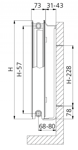 2 panneaux simples et 1 panneau à ailettes. Epaisseur 73 mm. Consoles en L avec verrouillage et amortisseurs, chevilles, vis, bouchon et purgeur.