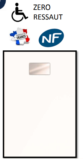 Receveur de douche en céramique, zéro ressaut. Marque Villeroy & Boch. Revêtement antidérapant classe B (PN 18) | Cache bonde rectangulaire finition chromée | 4 côtés émaillés pour une installation facilitée | Bonde centrée sur le petit côté | Conforme à l'arrêté du 11 septembre 2020, pour faciliter l'accès à la douche aux personnes à mobilité réduite, aux handicapés ou aux séniors.