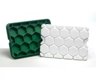 - Placez la plaque isolante en polystyrène dans le couvercle “nid d’abeille”.