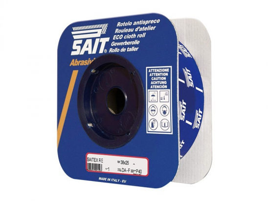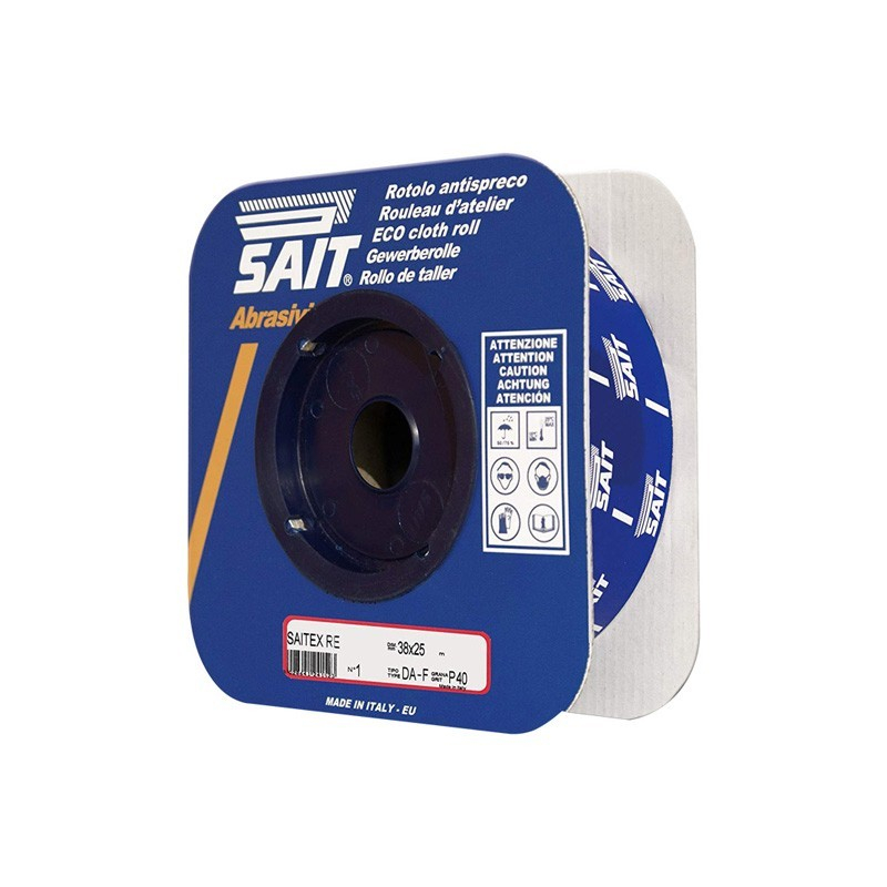 Rouleau Abrasif d'Atelier SAIT 38 mm x 25 m. Toile abrasive en corindon, double résine. Pour une utilisation manuelle.