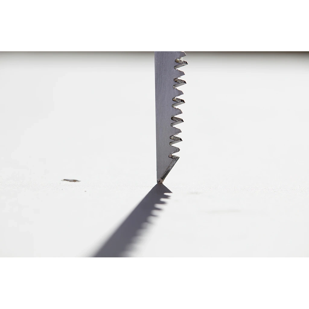 Traitement denture HardPoint 2x avec avoyage alterné pour : longévité de coupe accrue, meilleure pénétration, sciage plus facile Pointe effilée pour faciliter l'enfoncement de la lame à travers les panneaux de plâtre Tampon en bout de poignée pour faciliter l'enfoncement de la lame à travers les panneaux de plâtre