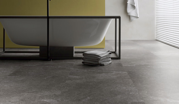 Sol en vinyle, Collection Stone Choice Pro, Ter Hurne. Choix de pierre. Comme le bois, les pierres parlent leur propre langage. Ici aussi, les facettes de la nature sont inépuisables. Connaissant l'esprit du matériau, nous créons des sols qui impressionnent les amateurs de carrelage. Le carrelage design en grand format n'est pas seulement simple et rapide à poser. Il a également des dimensions intelligentes. Le rapport d'aspect de 2 à 1 en longueur sur largeur crée des opportunités parfaites pour la pose de motifs.