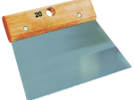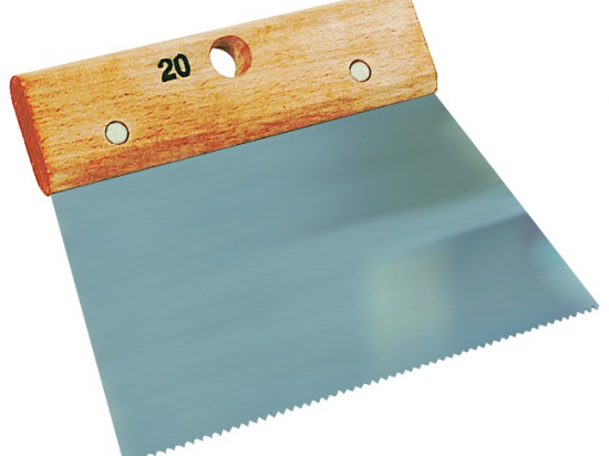 Spatule à colle 3X3. Dents carrées de chez Taliaplast. Peigne / spatule à colle avec un manche en bois. Ce produit sert à étaler la colle sur le support, et le carrelage si vous devez réaliser un double encollage. Vos outils sont sales ? Vous cherchez comment nettoyer vos outils ? Jetez un coup d’œil à notre article sur le sujet !
