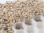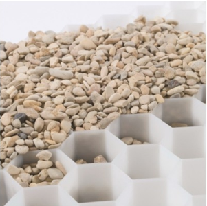 Produit de qualité, Made in France. Haute résistance à la compression (90 tonnes/m² vide) : supporte des véhicules lourds. Haute flexibilité (même à basse température) : supporte des véhicules roulants. Haute résistance aux charges de torsion : nécessaire pour les véhicules pivotants. Un collage 100% de la toile anti-racines très solide : empêche le gravier de parvenir sous les plaques. Grandes dimensions : permettent une pose rapide, mais pourtant faciles à transporter puisque les plaques sont pliables. Les dalles de graviers Eccogravel sont commercialisés en plaque de : Taille des plaques pour l'épaisseur en 30mm : 1.20m x 1.60m (Plaques de 1,20m x 1,60m pliées en 2 et reliées par le géotextile) Conférez à votre jardin le charme d’un sentier de gravier, sans se soucier de l’entretien ou de la durabilité. Le gravier constitue l’alternative par excellence au béton sans âme ou au sable désagréable. Lors de l’aménagement d’un sentier de jardin, une allée ou une terrasse, le gravier est une alternative pratique et esthétique. Les sentiers ou terrasses en gravier représentent cependant souvent des petits problèmes, qui peuvent être facilement évités en utilisant une stabilisation de gravier solide. La dalle stabilisatrice de graviers de forme alvéolée permet le maintien des graviers de vos allées et parkings. Les plaques autobloquantes se posent sur un lit de sable. Le géotextile soudé permet une filtration de l'eau. Grâce à sa structure en nid d’abeilles pourvue d’un géotextile fixé thermiquement et perméable à l’eau, Eccogravel stabilise le gravier de manière propre et esthétique. La combinaison du géotextile perméable à l’eau et de la structure en nid d’abeilles solide empêche la formation de flaques d’eau et le soulèvement de poussière. Exigeant peu d’entretien, les plaques stabilisatrices de gravier Eccogravel constituent la solution durable pour un sous-sol stable, d’une apparence naturelle et épurée.