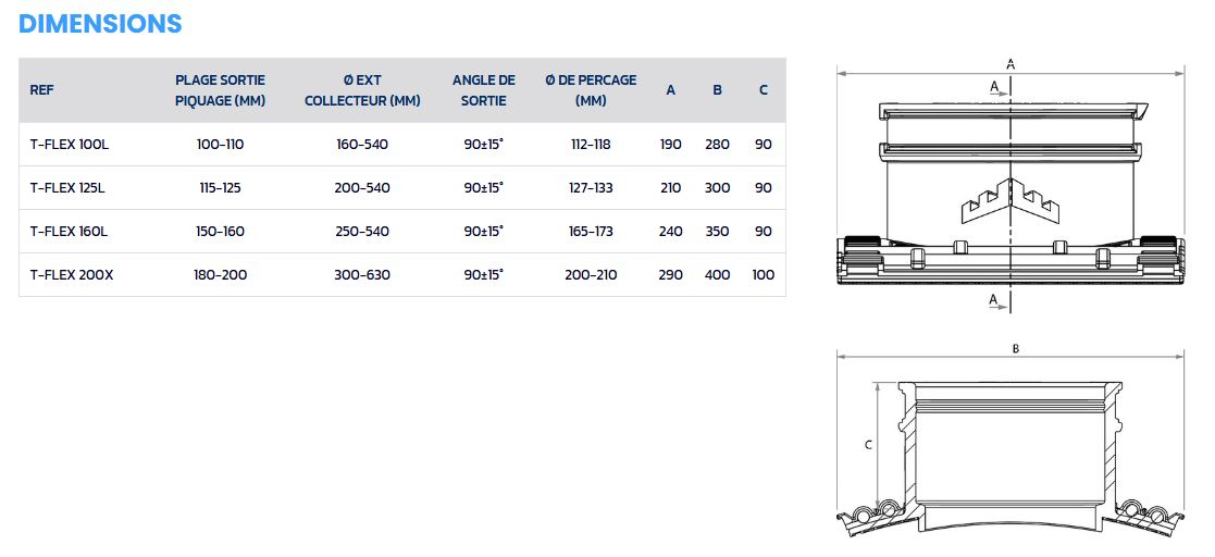 Il existe quatre tailles standards de piquage T-FLEX® :