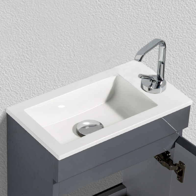 Simple vasque centrée pour lave-mains. Vasque livrée sans trop plein.