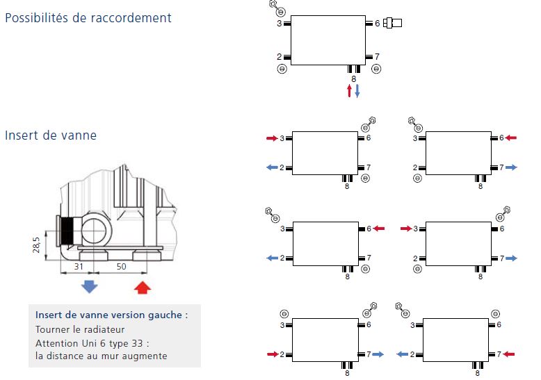 Afin de bien choir votre radiateur, nous vous détaillons ci-dessous chacun des modèles avec leur composition, leur caractéristiques et surtout les possibilités de raccordement . En fonction de la pose et de la sortie de vos tuyaux, vous n'aurez plus qu'à choisir le modèle adapté et l'acheté en ligne avec une livraison à domicile.
